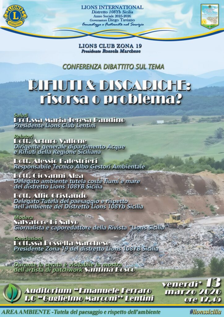 di Salvatore Di Salvo LENTINI – “ Rifiuti e discariche: risorsa o problema”. E’ il tema della conferenza dibattito che si svolgerà venerdì 13 marzo 2026, alle 17,45, all’Auditorium “Emanuele Ferraro” dell’Istituto comprensivo “Guglielmo Marconi” di Lentini. L’iniziativa promossa dal Lions club di Lentini presieduto da Maria Teresa Raudino, è organizzata dalla Zona 19 del […]