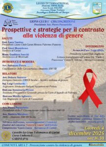Si è svolto ieri un pomeriggio al Castello di Carini (PA) un evento di particolare valore civile e sociale, su un tema sempre sensibile e attuale, un convegno su Prospettive e strategie per il contrasto alla violenza di genere, promosso dai club Lions della Prima Circoscrizione del Distretto 108 Yb Sicilia, con l’Ordine degli avvocati di Palermo. La data e il luogo scelti per l’evento non lo sono stati a caso, perché proprio lì il 4 dicembre del 1563 Laura Lanza è stata uccisa dal padre Cesare che la sorprese con il suo amante, Ludovico Vernagallo, per difendere l’onore della famiglia. E pare che da allora poche cose – purtroppo – sono cambiate, se si continua ancora oggi a parlare e discutere di violenza di genere… Dopo i saluti di Luca Tantino, presidente del Lions club Carini Riviera Palermo Ponente ospitante, del sindaco di Carini Giovì Monteleone e dell’arcivescovo di Monreale Gualtiero Isacchi, sono seguiti gli interessanti interventi, moderati dall’avvocato e lion Salvatore Priola. Debora Sansone, anche lei avvocato e lion, l’ispettore di polizia Luigi Lombardo, il sostituto procuratore generale della Repubblica Annamaria Picozzi e la collega Mirella Agliastro si sono quindi alternati al microfono, esponendo i loro temi e le loro posizioni sul toccante argomento al centro della serata. Emozionante è stato pure l’intermezzo teatrale, a cura del lion Luigi Alioto, che ha recitato il celeberrimo canto V dell’Inferno dantesco, quello dell’appassionante storia d’amore tra Paolo e Francesca. In conclusione, gli interventi di chiusura del presidente della I Circoscrizione Lions Pietro Passariello e della PDG Daniela Macaluso, nonché la premiazione dei cinque studenti finalisti del concorso “Lettera a Laura”, promosso dall’Istituto comprensivo Laura Lanza – Baronessa di Carini, che hanno affrontato i temi del rispetto, del coraggio e del cambiamento. #lionssicilia #carini