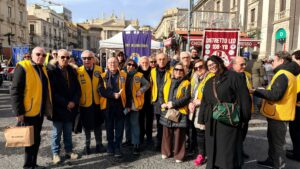 Oggi i Lions della V Circoscrizione hanno ricevuto l’onore ed il privilegio di partecipare al corteo per l’offerta della cera a sant’Agata, la Patrona di di Catania, la cui festa si celebra ogni anno il 5 febbraio ma entra nel vivo proprio il 3 e il 4 febbraio. E così tanti soci, in rappresentanza dei 17 club service che compongono la c0ircoscrizione guidata da Giuseppe Sortino, hanno sfilato stamani lungo la via Etnea con i loro gilet gialli e blu e accompagnati dai labari, fino alla cattedrale, recando in mano una candela di cera bianca, che è stata poi offerta in chiesa alla Patrona in gesto di devozione. La cerimonia dell’offerta della cera a sant’Agata è uno dei momenti più solenni e antichi della festa patronale catanese. Essa risale al Medioevo e simboleggia la devozione della città e delle sue istituzioni alla Patrona. In passato la cera offerta dai catanesi veniva usata per realizzare poi le candele e i ceri votivi che ardevano davanti al fercolo di sant’Agata durante la solenne processione, mentre oggi il gesto mantiene solo il valore simbolico di luce e fede, rappresentando la comunione tra i catanesi e la loro patrona. Partecipare alla cerimonia dell’offerta della cera è un onore e un privilegio. Infatti, ad essa partecipano le autorità civili e religiose, le corporazioni e associazioni di mestiere, i devoti e, anche quest’anno, i Lions della V Circoscrizione. #lionssicilia #catania