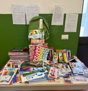 L’iniziativa ha seguito un doppio contributo: il materiale è stato raccolto attraverso il service “Zaino sospeso” e integrato con le donazioni dei soci del Lions Club Catania Gioeni. Durante la giornata sono stati consegnati materiali scolastici e creativi, tra cui quaderni, penne, matite, compassi, pastelli, pennarelli e portacolori.