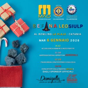 Epifania all’insegna del gioco e della solidarietà per i giovani soci del Leo club Catania Val Dirillo. Il 6 gennaio scorso, infatti, i Leo hanno promosso la terza edizione di Befana Leo Siulp, service condotto insieme a MAD Accademia e Siulp – Sindacato italiano unitario lavoratori polizia. Il cuore dell’iniziativa è stato quello di offrire una giornata di gioco, condivisione e spensieratezza a bambini e bambine provenienti da comunità di accoglienza e case famiglia, inseriti in contesti di fragilità. L’iniziativa si è svolta presso il bowling “La Playa” di Catania, trasformato per un giorno in uno spazio di festa, inclusione e accoglienza. Elemento centrale del progetto è stata la raccolta di giocattoli usati, ma ancora in ottime condizioni, in modo da promuovere l’idea del riuso consapevole e sensibilizzare sul tema della lotta agli sprechi. Grazie a questo service, sono stati messi insieme ben 3.800 giocattoli, parte dei quali sono stati donati ai 126 bambini partecipanti all’evento del 6 gennaio. Oltre ai giocattoli, il service ha permesso di raccogliere anche 100 kg di beni di prima necessità, che saranno poi destinati a diverse comunità del catanese, rafforzando ulteriormente il valore sociale dell’iniziativa. A questo proposito è da ritenere significativa anche la collaborazione di diversi comuni dell’interland, che hanno messo a disposizione i pullman per il trasporto dei bambini che hanno partecipato al service. #lionssicilia #catania