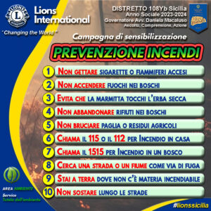 Prevenzione incendi: campagna di sensibilizzazione dei Lions siciliani