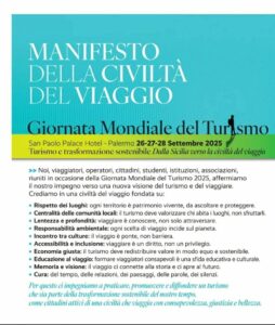I Lions della I Circoscrizione (presidente Pietro Passariello) invitano a sottoscrivere il Manifesto della Civiltà del Viaggio, lanciato in occasione della Giornata mondiale del turismo, che si celebra ogni anno il 27 settembre per volontà dell’Assemblea generale delle Nazioni Unite. E lo fanno al Travel Expo 2025, in programma dal 26 al 28 settembre nel capoluogo siciliano, dove i Lions club della I Circoscrizione sono presenti con una loro postazione. Con la firma del Manifesto viaggiatori, operatori, cittadini, studenti, istituzioni, associazioni, vogliono affermare il loro “impegno verso una nuova visione del turismo e del viaggiare”, per “diffondere un turismo che sia parte della trasformazione sostenibile del nostro tempo, come cittadini attivi di una civiltà che viaggia con consapevolezza, giustizia e bellezza”. E’ possibile firmare il documento (riprodotto qui) recandosi personalmente, fino al 28 settembre, alla manifestazione palermitana presso il San Paolo Palace Hotel, oppure online, utilizzando l’apposito link. #lionssicilia #palermo