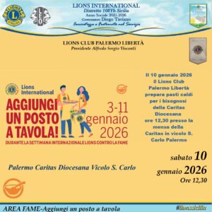 Anche il Lions club Palermo Libertà ha aderito al service Aggiungi un posto a tavola, preparando e servendo sabato scorso pasti alla Caritas diocesana del capoluogo di regione. I soci, guidati dal presidente Alfredo Sergio Visconti, hanno mostrato il lato solidale del lionismo, compiendo un gesto di vicinanza a quanti sono assistiti dalla Caritas di vicolo san Carlo. I soci hanno allora cucinato un pasto caldo per ben 55 persone, che sono state poi servite a tavola. #lionssicilia #palermo