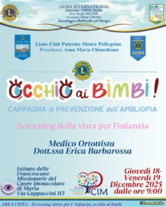 Service Occhio ai bimbi promosso dal Lions club Palermo Monte Pellegrino in una due giorni all’insegna della solidarietà verso i più piccoli. Giovedì e venerdì scorsi i soci del club, guidato da Anna Maria Chianchiano, affiancati da due ortottisti, Francesco Castella ed Erica Barbarossa, hanno vivistato 60 bambini frequentanti l’Istituto delle suore francescane del capoluogo, svolgendo un service rivolto alla cura della loro vista, bene prezioso per i piccoli ospiti della struttura, da sempre obiettivo primario per Lions International. Al termine della visita oculistica, i piccoli pazienti sono stati pure premiati con un omaggio, un gesto di cortesia e di amore per la loro disponibilità. #lionssicilia #palermo