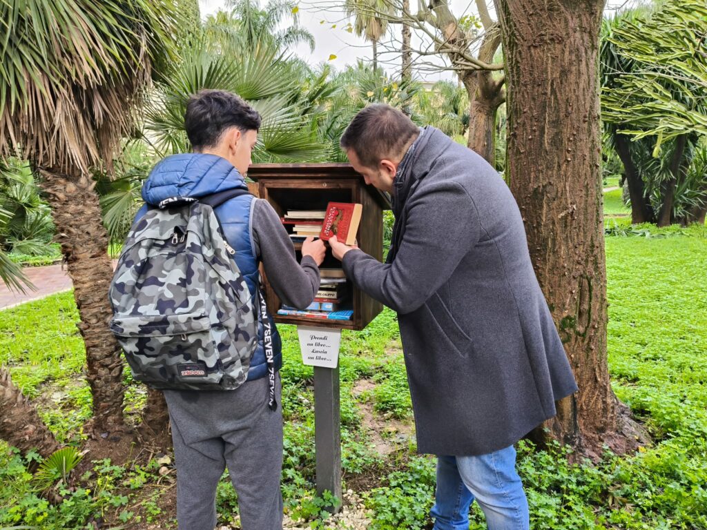 In occasione della Giornata della memoria, martedì scorso gli alunni dell’Istituto di istruzione “Corbino” di Partinico (PA), accompagnati dai loro insegnanti, si sono ritrovati per fare memoria all’interno della villa comunale Falcone, al Giardino dei giusti, al Monumento ai caduti e alla bookcrossing, la bacheca posta lì lo scorso anno per volontà del Lions Club Partinico Serenianus, presieduto da Marinella Fiore. Le tre tappe hanno rappresentato un percorso fisico, oltre che di ricostruzione del ricordo, che i giovani hanno voluto seguire dedicandolo alle vittime dell’Olocausto compiuto dai nazifascisti contro gli ebrei. In particolare, vogliamo qui sottolineare l’ultimo momento della giornata, che ha rappresentato una tappa dell’iniziativa Lascia un libro, prendi un’avventura, promosso dal Lions club locale, un gesto semplice, ma significativo che permette a chiunque di scambiare libri e così fare “circolare” le storie, le idee, incentivando tutti, giovani e meno giovani, ad aprire la mente con la lettura. Come? Semplicemente accostandosi alla cassetta, lasciando un libro e prendendone in cambio un altro. #lionssicilia #partinico