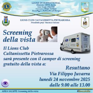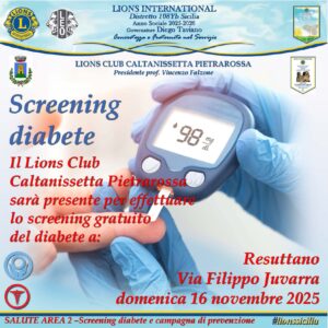 È iniziata domenica scorsa, 16 novembre, tutta una serie di screening sanitari gratuiti e senza prenotazione di udito, diabete e vista, organizzati dal Lions club Caltanissetta Pietrarossa, presieduto da Vincenzo Falzone. Presso la sede del Comune di Resuttano (CL), in via Juvarra, e col supporto del camper Amplifon, si è provveduto ad un controllo gratuito dell’udito della popolazione che si è avvicinata al mezzo. Contestualmente è stato pure effettuato uno screening diabetologico, il tutto con la presenza dei soci del club, che hanno permesso lo svolgimento del service che continuerà anche il prossimo lunedì 24 novembre, sempre in via Juvarra, ma questa volta con la presenza del camper cofinanziato dalla Fondazione Lions International ed in uso all’Unione Italiana Ciechi e Ipovedenti, mezzo che permette di effettuare screening della vista completi. #lionssicilia #resuttano