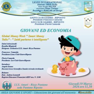 Lions e Leo dei club service Giarre Riposto hanno unito le loro forze per l’educazione finanziaria dei giovani. Giovedì 19 marzo, presso l’Istituto di istruzione superiore “Amari-Rizzo Pantano” di Riposto, i soci dei due club hanno organizzato una conferenza sul tema Giovani ed economia. Dopo i saluti istituzionali del delegato della dirigente scolastica, Sebastiano Strano, e del presidente del Lions club, Francesco Camarda, la conferenza è stata introdotta dalla lion Angela Strano, che ha esordito dicendo che la conferenza era stata organizzata in occasione della Global MoneyWeek, un momento dedicato all’educazione finanziaria dei giovani, mentre il relatore è stato Andrea Leonardi, membro dell’AIEF (Associazione Italiana Educatori Finanziari), che ha sottolineato il fatto che capire come funziona