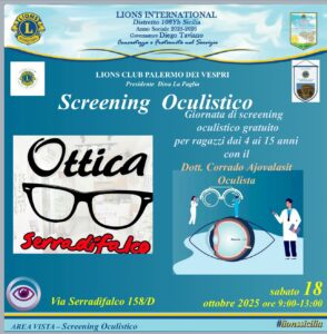 Il Lions club Palermo dei Vespri, presieduto da Dina La Paglia, ha organizzato sabato scorso una giornata di screening oculistico gratuito per i bambini di età compresa tra i 5 e i 15 anni. L’iniziativa, inserita nel programma di attività del club a favore della salute in genere e della prevenzione visiva in particolare, ha riscosso grande partecipazione e apprezzamento da parte delle famiglie. Le visite sono state eseguite presso l’ottica Serradifalco da Corrado Ajovalasit, oculista, coadiuvato dal socio Vincenzo Ajovalasit, dalla presidente del club, dal vice presidente Giampiero Brillo e dal presidente di Zona 3 Salvo Zambito. #lionssicilia #palermo