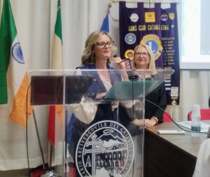 Nel corso della serata – con la conduzione del cerimoniale del vice cerimoniere distrettuale Vittorio Spampinato – è stata celebrata anche l’accoglienza nel Club Catania Etna della nuova socia Gracy Pappalardo, socio sponsor Massimo Parisi. Il Governatore Taviano ha espresso il proprio apprezzamento per l’impegno dei Club uniti nel servizio del territorio all’insegna del motto Concretezza e Fraternità nel servizio. #lionssicilia #catania